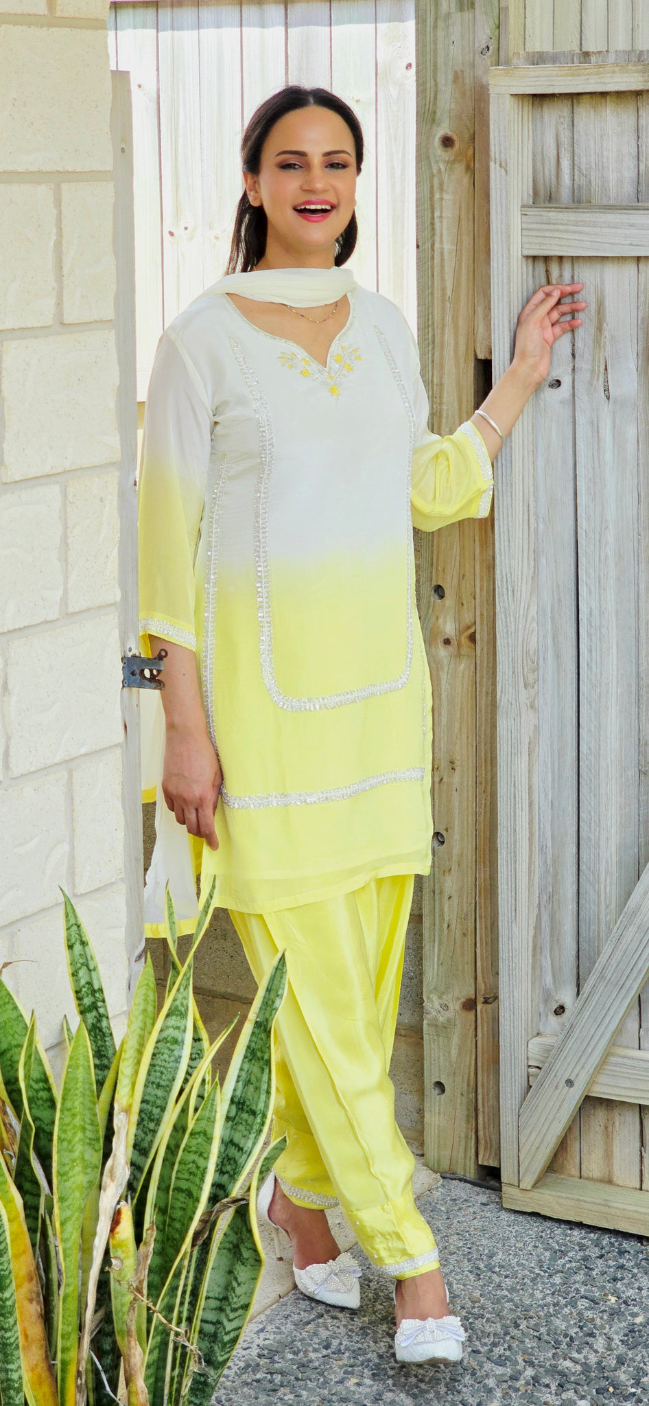 • Load image into Gallery viewer, 2 tone lemon Farsi suit