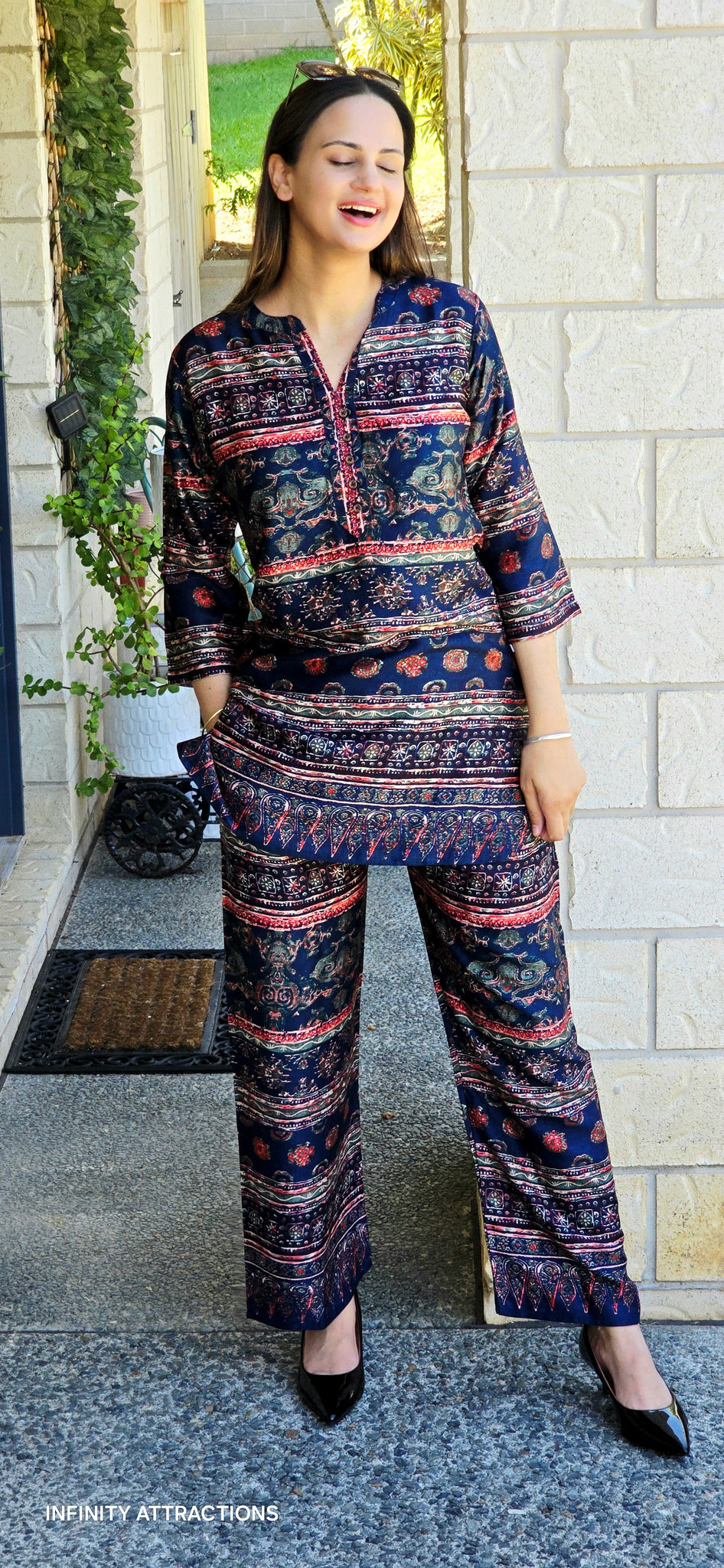 • Load image into Gallery viewer, Navy Gaji silk coordset