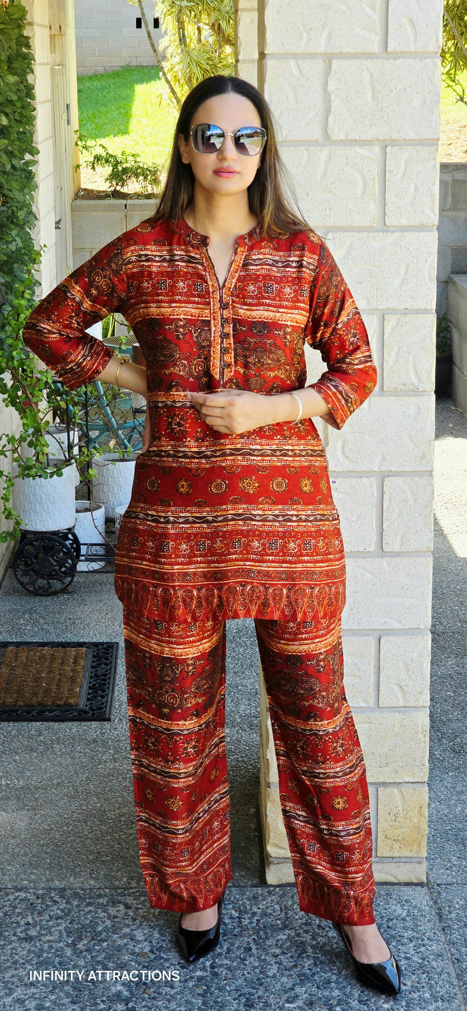 • Load image into Gallery viewer, Rust Gaji silk coordset