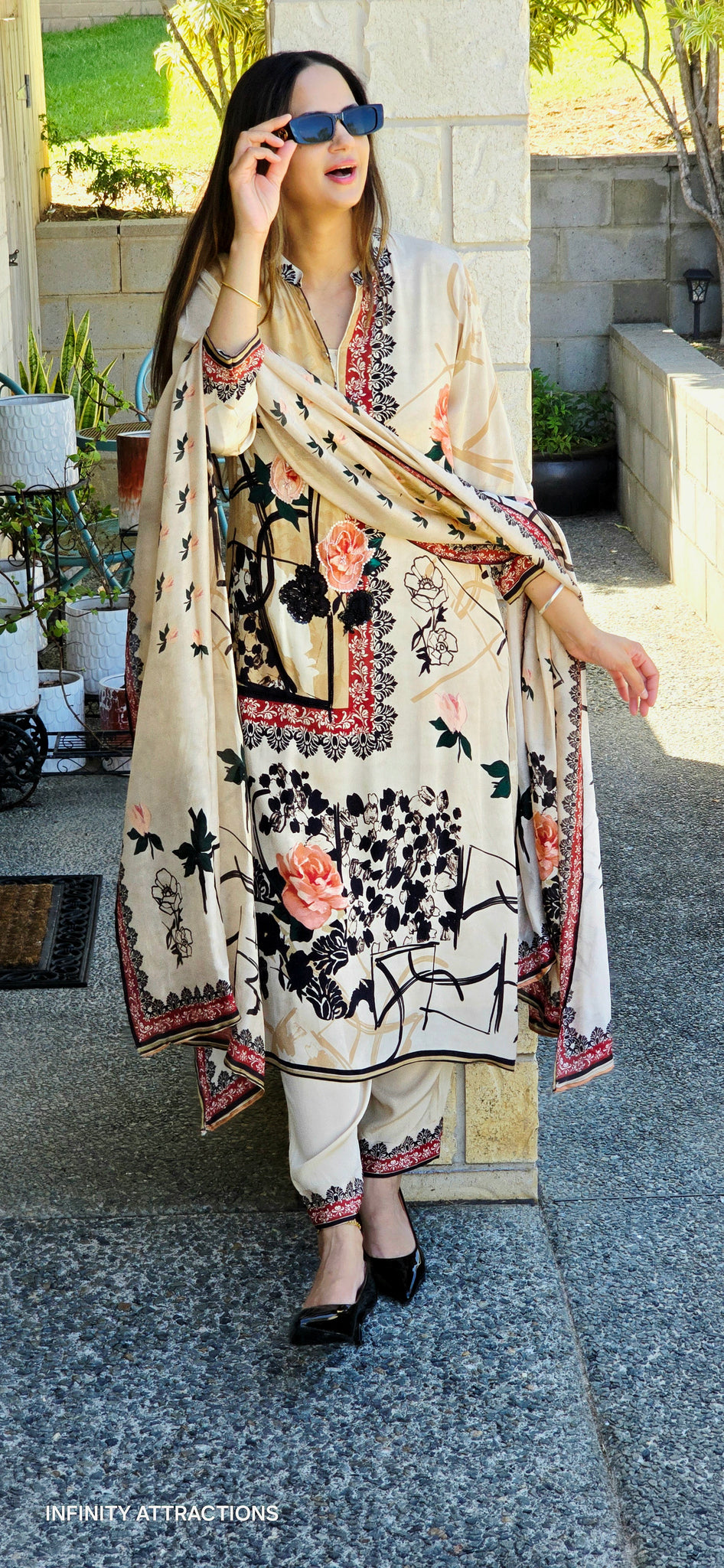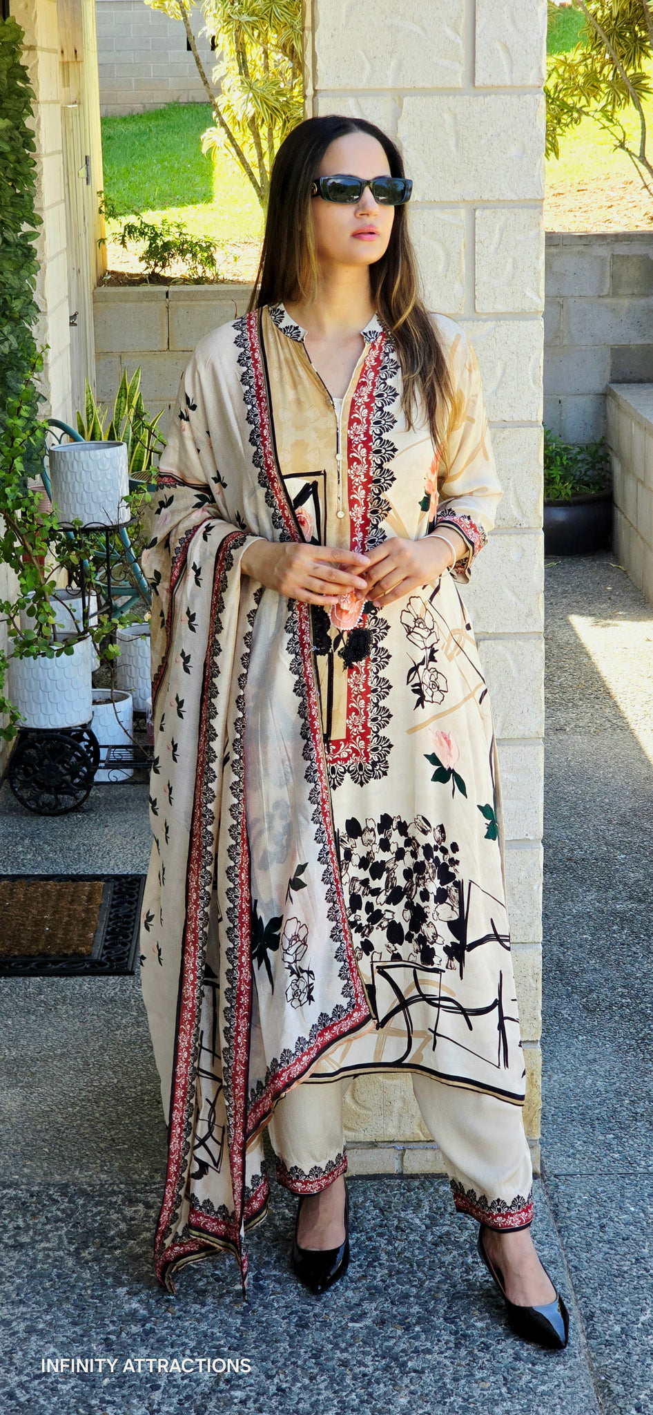 Beige Pakistani designer suit