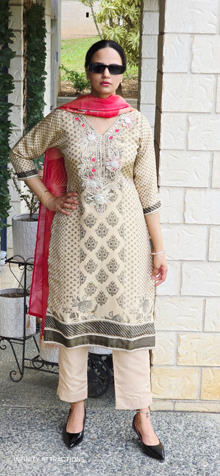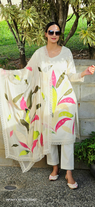 Ivory pure Gajji silk lace style suit (Taking pre orders)