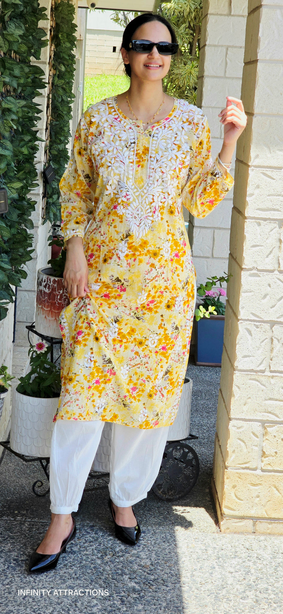 • Load image into Gallery viewer, Yellow printed lakhnawi kurta